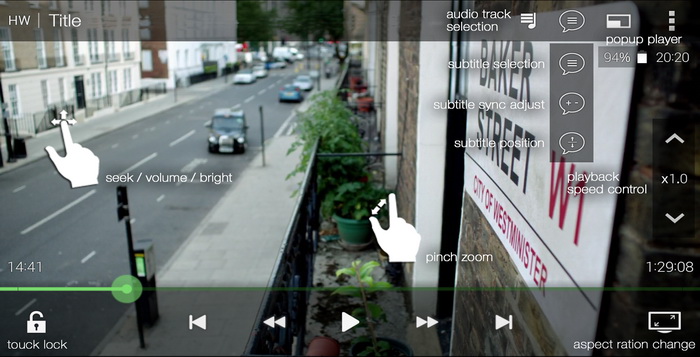 Untuk dukungan format yang lebih baik maka ada download codec yang tersedia baik dari para pengembang atau Anda dapat memilih untuk menggunakan codec lain. Anda akan memiliki akses ke pilihan subtitle, aspek kontrol rasio dan fitur lain hanya dari layar utama.