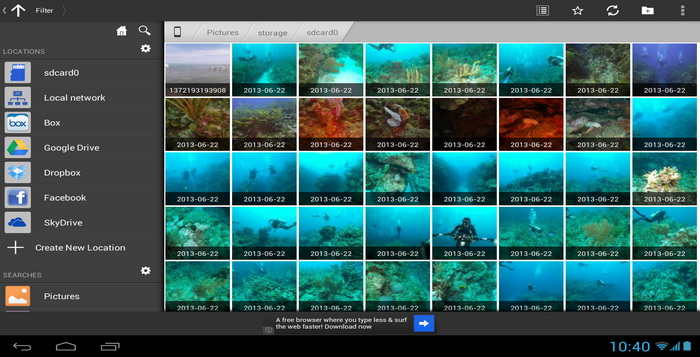 ES File Explorer File Manager menyediakan akses ke gambar, musik, video, dokumen dan file lainnya pada kedua perangkat Android Anda dan komputer Anda. ES File Explorer memungkinkan pengguna Android, di mana pun mereka berada untuk mengelola sumber daya mereka secara bebas.