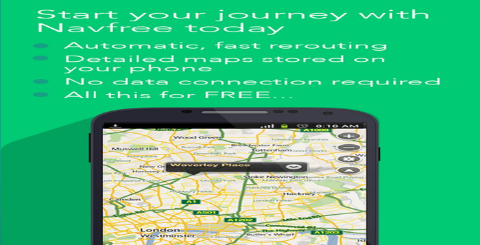 Navfree: Free GPS Navigation juga menggunakan OpenStreetMaps dan Navfree: Free GPS Navigation adalah aplikasi navigasi gratis dengan instruksi untuk perangkat Android.