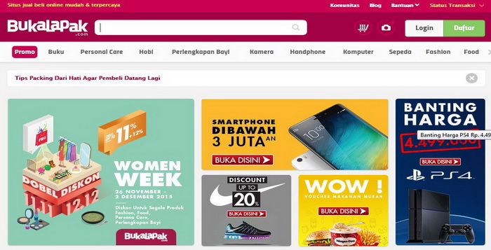 - Klik tombol LOGIN yang terletak di sebelah kanan bagian pojok atas halaman web Bukalapak.com.